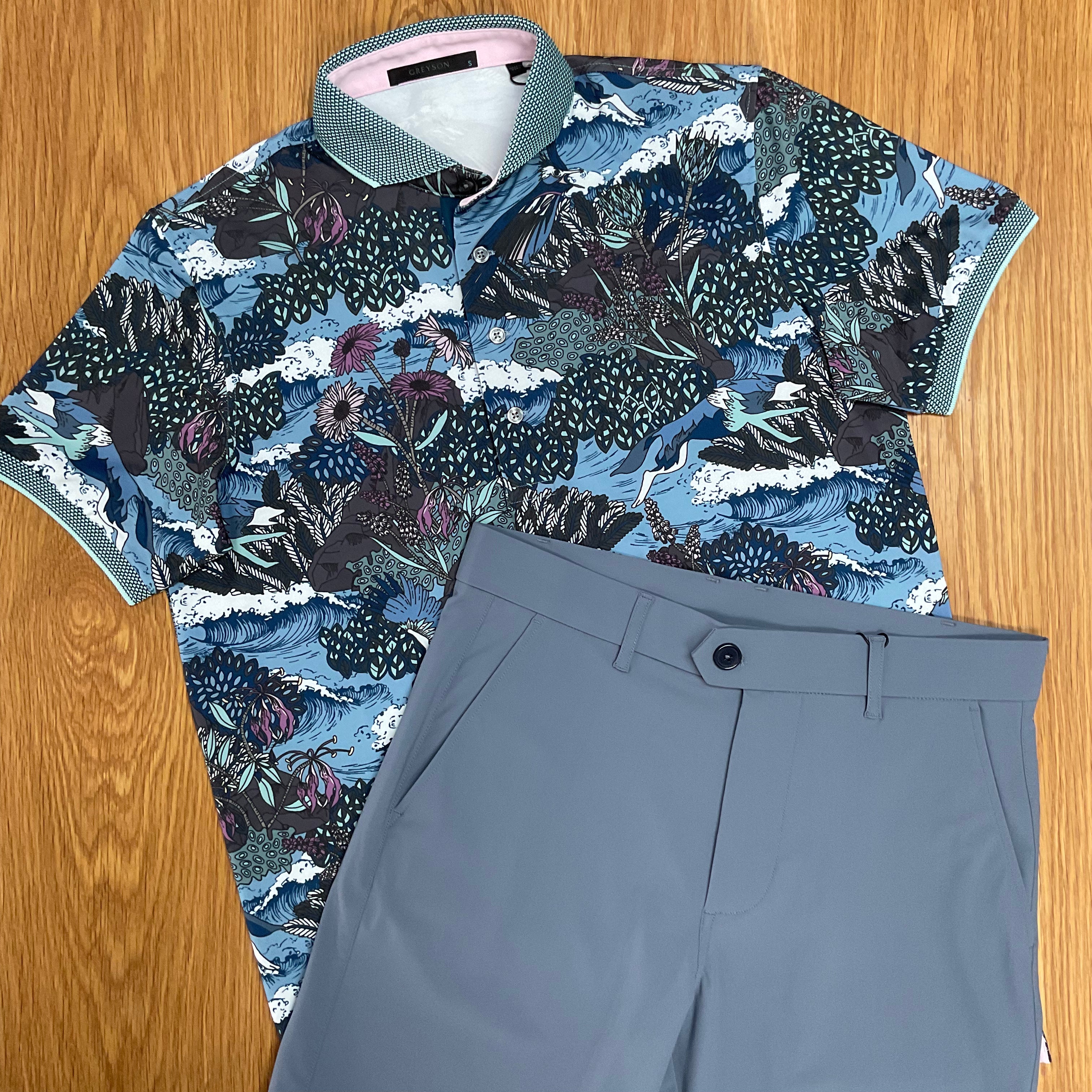 The In The Waves Polo features a modern design with a unique tropical illustrated pattern that adds a bit of fun and interest to your look. Made from high-quality materials, this polo offers both style and comfort, making it a versatile addition to your wardrobe.