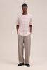 T-shirt constructed in a yarn-dyed striped crepe jersey that provides a crinkled texture and distinctive pebble-like handfeel. The soft organic cotton and wide hems offer structure with stretch.