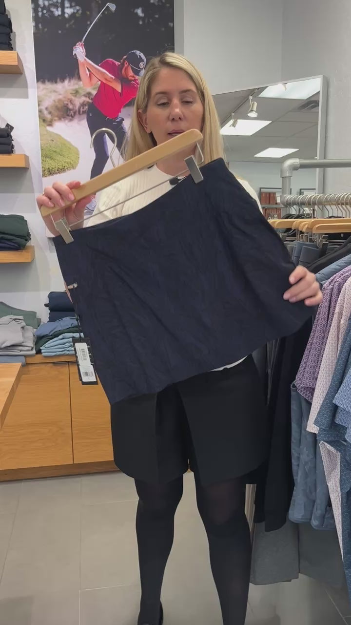 The signature Painted Feather print—a striking blend of deep navy and black—adds bold sophistication and a contemporary edge, reflecting Greyson’s refined approach to women’s performance apparel. This unique pattern makes the Phoenix Skirt an eye-catching alternative to solid athletic bottoms while still pairing effortlessly with tops in Maltese Blue, black, or crisp white.