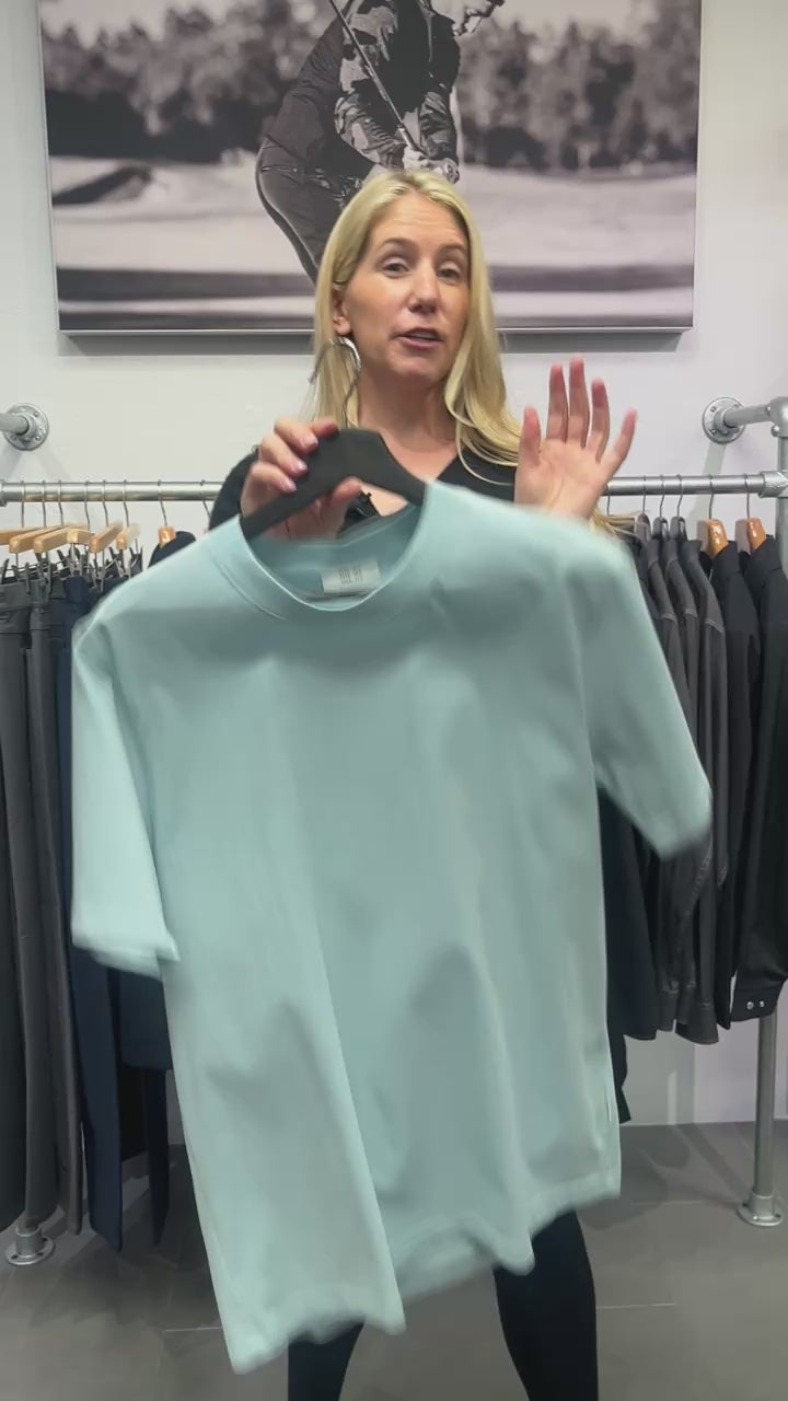 Designed with a relaxed, slightly oversized fit, the Adam T-Shirt delivers a comfortable silhouette that feels current without being sloppy. The substantial ribbed neckline adds structure and visual depth, while twin needle stitching along the neckline reinforces durability and elevates the overall finish. The Winter Sky colorway a clean, light blue tone offers a fresh alternative to neutral basics and works seamlessly year-round.