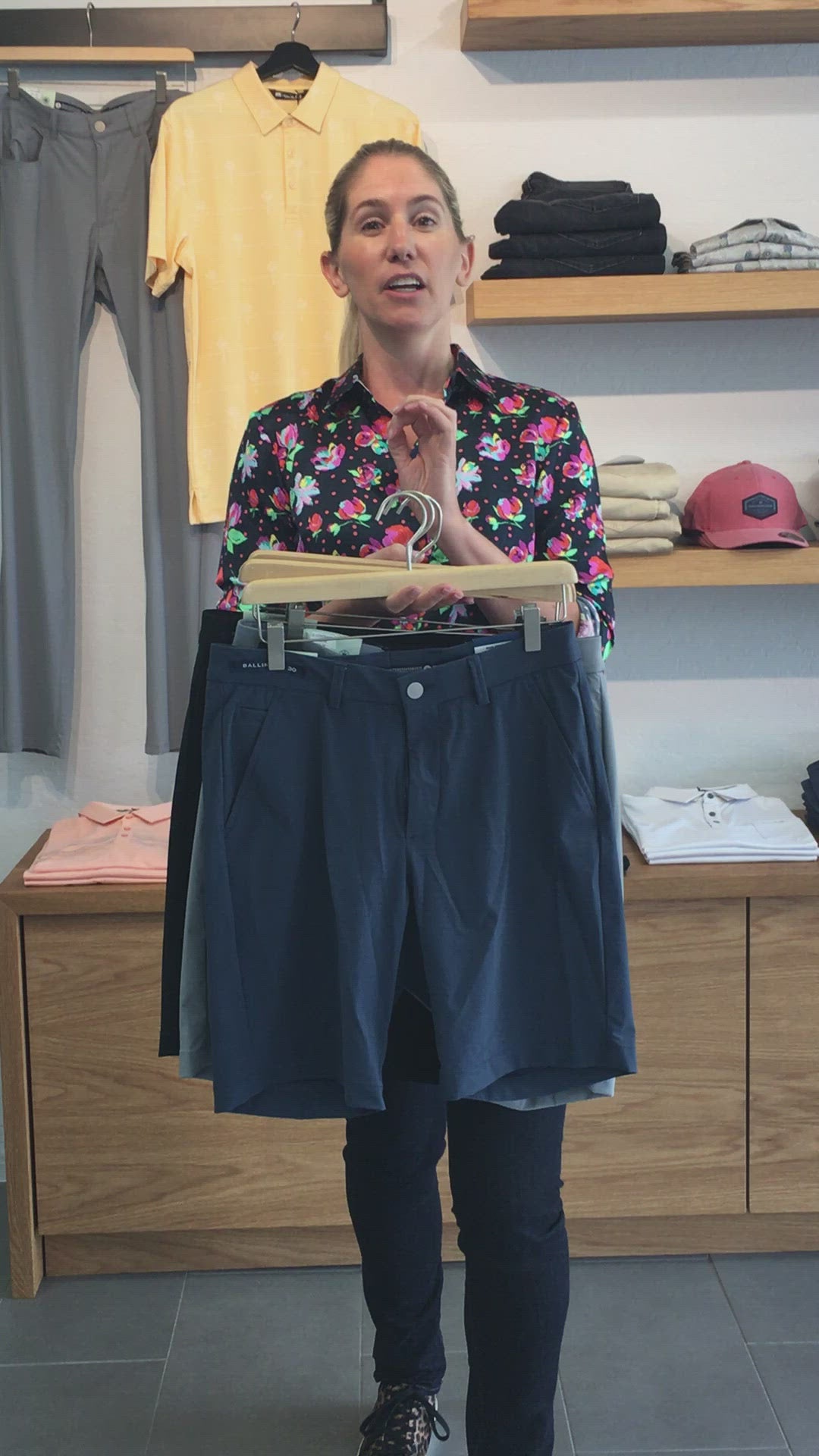 Here is a great grey men's tech short. It can be worn paired with dress shirts or polo shirts. You can dress it up or down. This short is in the color grey, and is a great lightweight short that guys love to wear because they are breathable and will keep you cool. Wear these shorts on a casual day out or wear them for your next tee time. Here is another great option if you are a guy who loves a more athletic lightweight short.