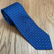 This royal blue silk tie features a subtle dot pattern that adds just the right amount of visual interest without overpowering your look. A versatile choice that brings depth and sophistication to any dress shirt. Pair it with a crisp white or pale blue shirt and a navy or gray suit for a sharp, professional ensemble with timeless appeal.