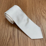 This champagne tie, crafted in a textured twill weave, offers a soft sheen and subtle dimension, perfect for formal occasions where elegance is key. Its warm neutral tone complements a wide range of suiting. Pair it with a white dress shirt and a navy or light grey suit for a sophisticated look ideal for weddings, evening events, or refined business settings.
