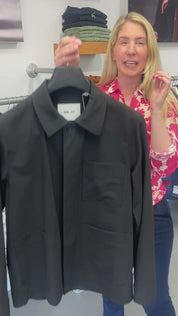A shirt jacket should be a staple in every men's wardrobe. It's a simple way to elevate your look. This versatile layering piece offers the style of a shirt jacket with the warmth of a wool blend, perfect for transitional seasons. Stay effortlessly cool and stylish with this essential addition to your wardrobe. Workwear-inspired overshirt crafted in a drapey, responsible wool blend with a touch of stretch, designed with a soft collar, a single chest pocket, and twin patch pockets at the waist.